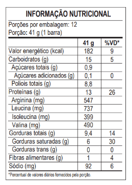 É fonte de proteínas, conta com aporte de carboidratos de baixo índice glicêmico, TCM e possui apenas os açúcares naturalmente presentes em seus ingredientes.